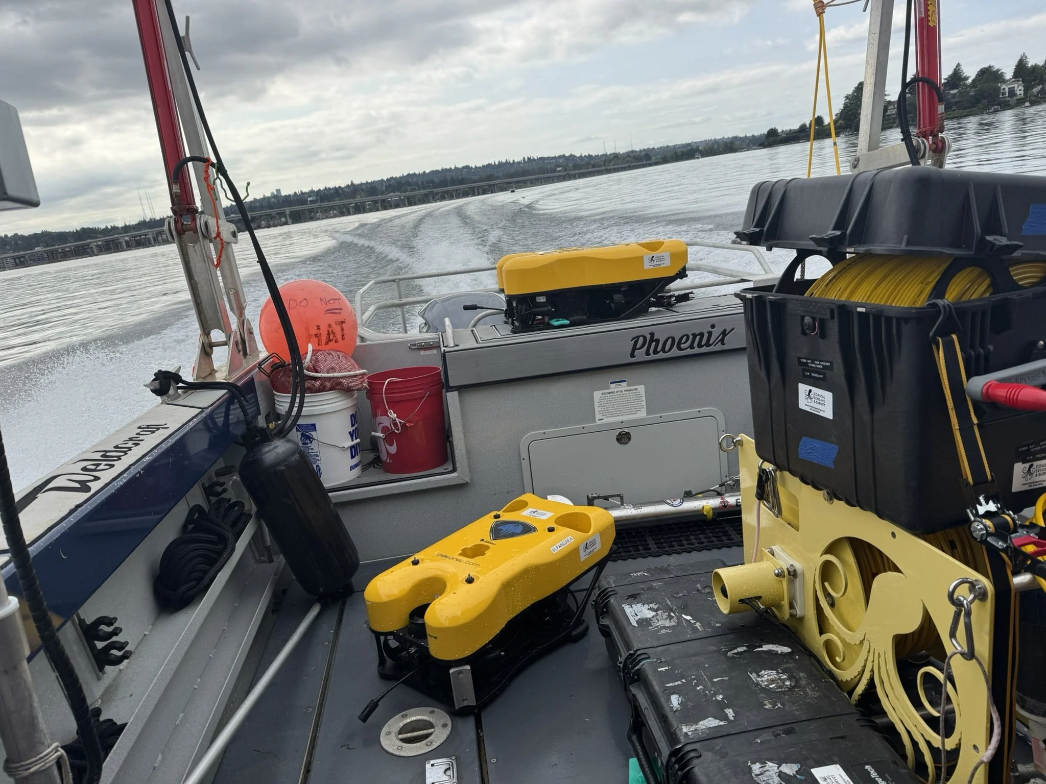The ROV’s leveraged by CSAS are highly portable and mobile. In the Northwest we are known to have deep / high current water. Our operators have experience with vessel management and ROV operation in these conditions. The small inspection class ROV’s frequently operate in 100+ meters of water in the Puget Sound and are configured for 300 meter operation. The Phantom ROVs are configured for 1000 meter operation.